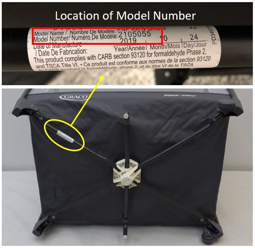 Step 1: Determine if your product is part of the recall. This recall involves the inclined sleeper accessory sold with the Graco Pack ‘n Play Day2Dream Playard with Bedside Sleeper, Graco Pack ‘n Play Nuzzle Nest Playard, Graco Pack ‘n Play Everest Playard and Graco Pack ‘n Play Rock ‘n Grow Playard with the following model numbers.